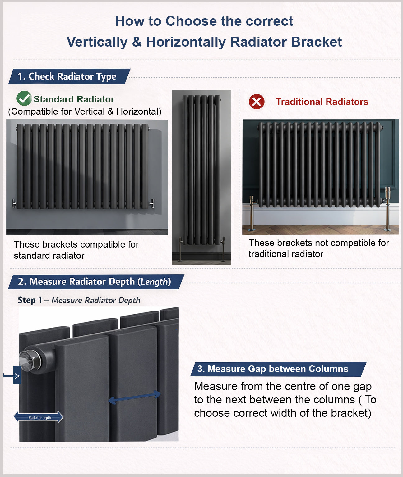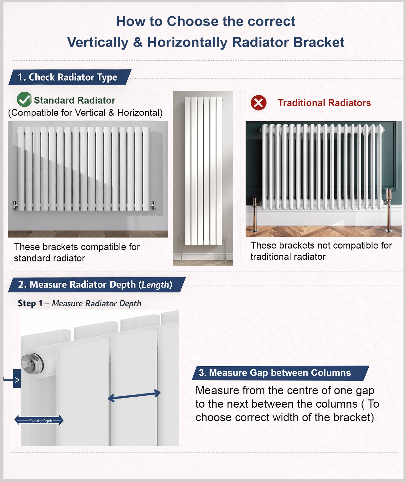 Radiator Brackets - Designer Vertical Column Dual Arm | Available in 4 Sizes & 4 Colour Options